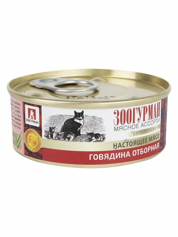 Зоогурман консервы Мясное ассорти Настоящее мясо Говядина отборная для кошек, 250 гр.