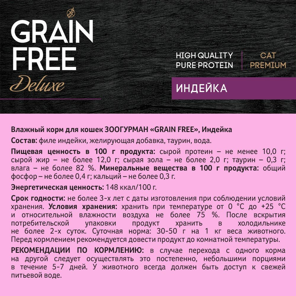 Зоогурман 16784 Grain Free консервы для кошек Индейка 100г (24 штуки)