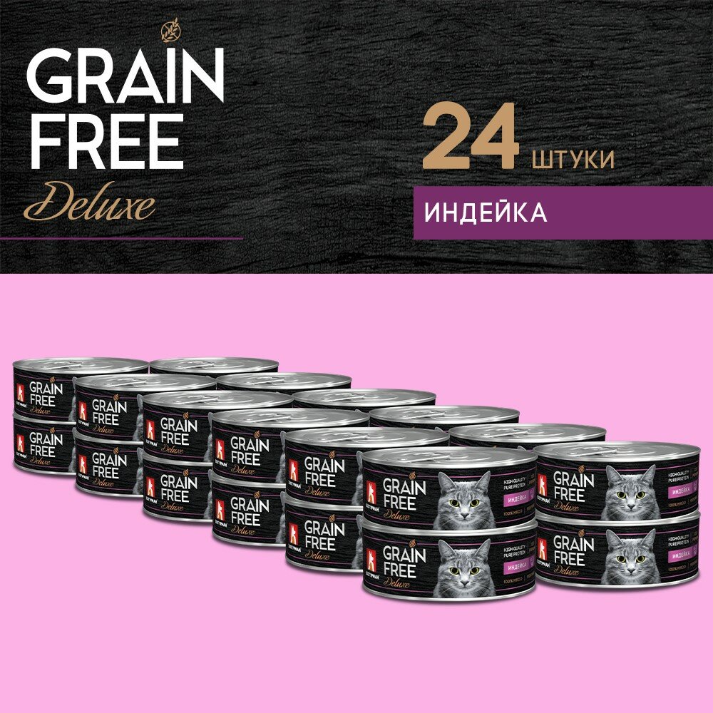 Зоогурман Grain Free консервы для кошек Индейка 100г (24штуки)