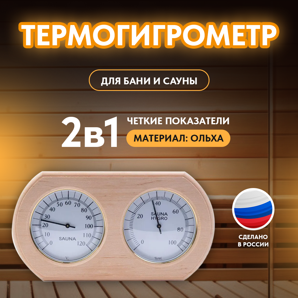 Термогигрометр для бани и сауны, ТН-20-A, ольха, от 0°С до +120°С