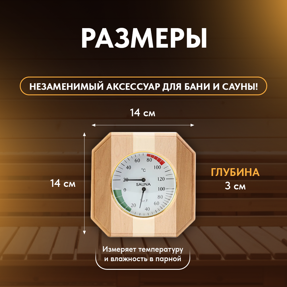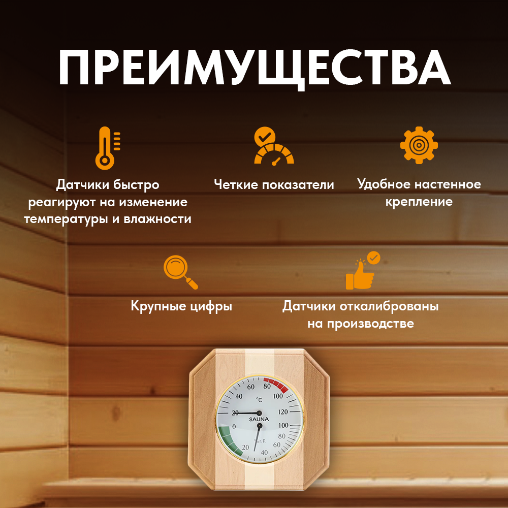 Термогигрометр для бани и сауны, контрастная древесина, от 0°С до +120°С