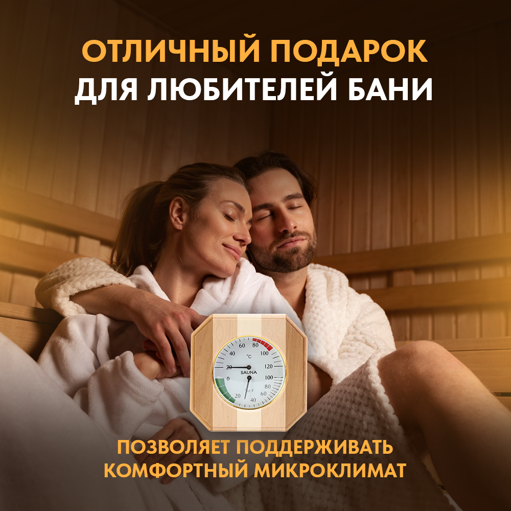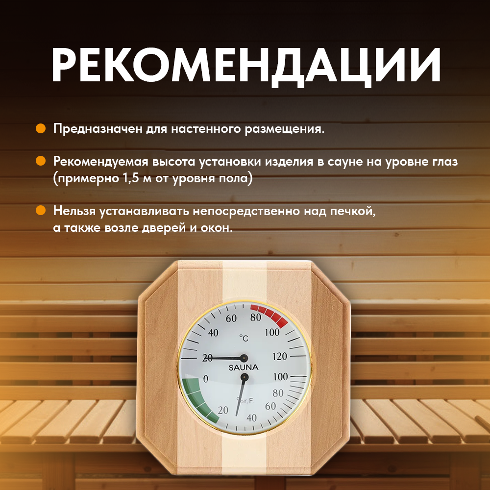 | Комплектация | Термометр для бани, гигрометр для бани |