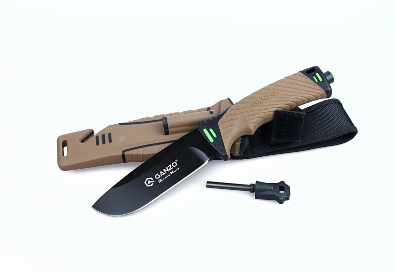 Нож выживальщика Ganzo G8012-DY с огнивом, пустынный