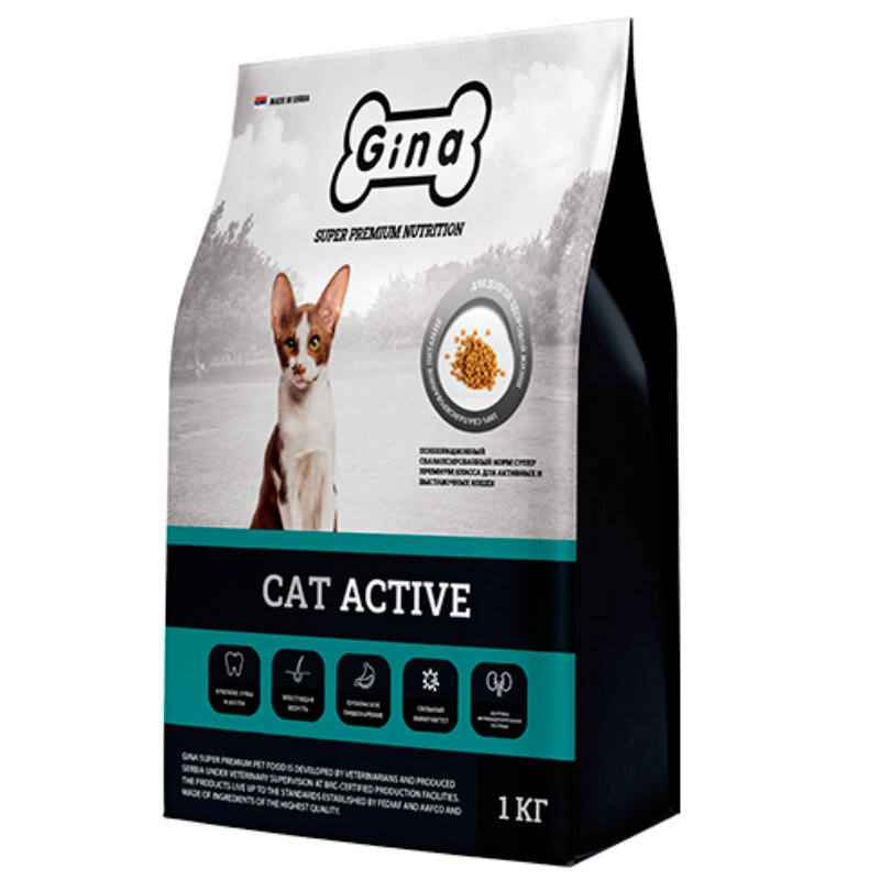 Корм для кошек сухой Gina Cat Active активные, цыпленок, утка, рис, 1 кг интересное: