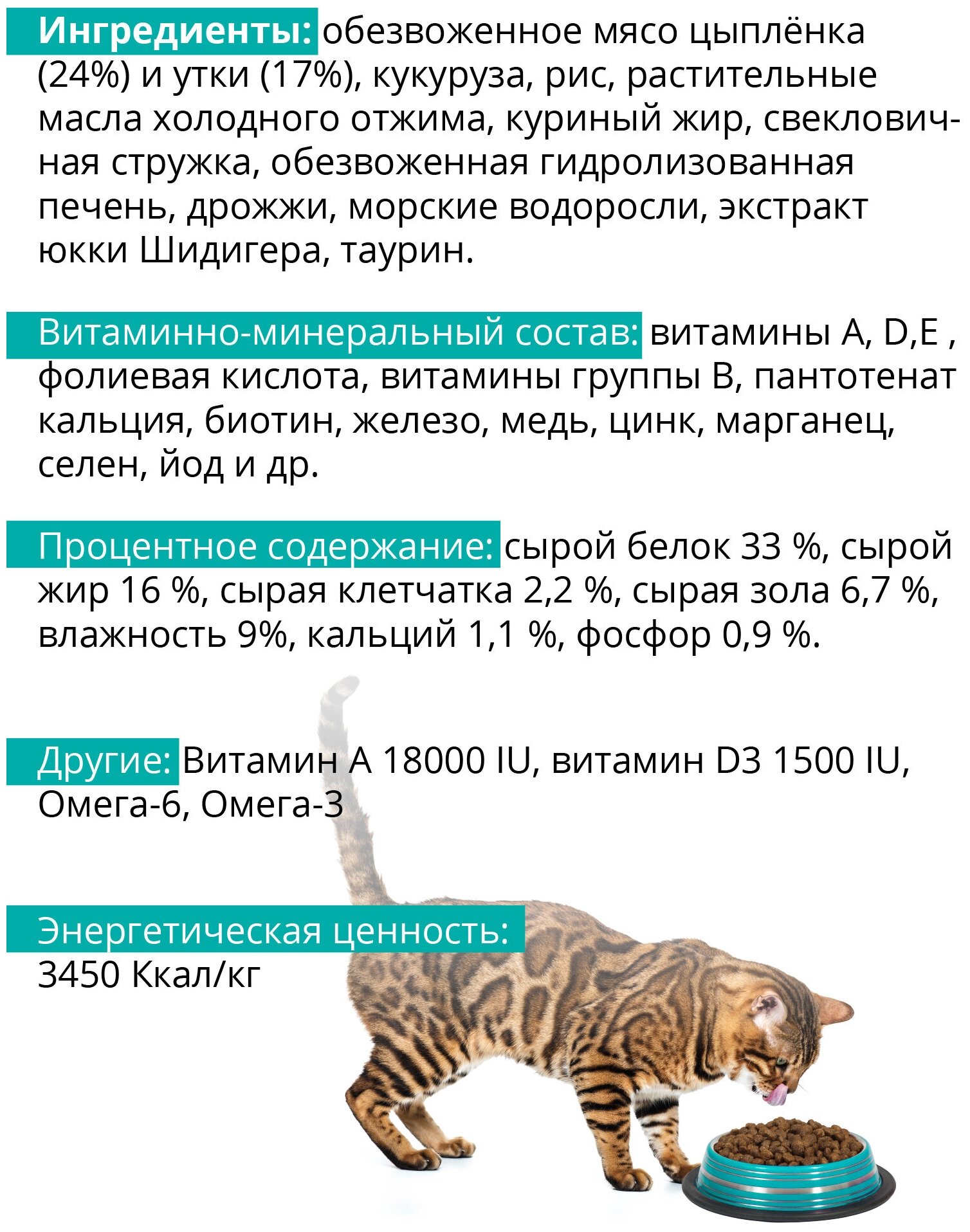 | Дополнительная информация | Рекомендуется корм для взрослых кошек с 10-12 месяцев, для пожилых и кастрированных кошек, не склонных к полноте, в соответствии с нормами. |