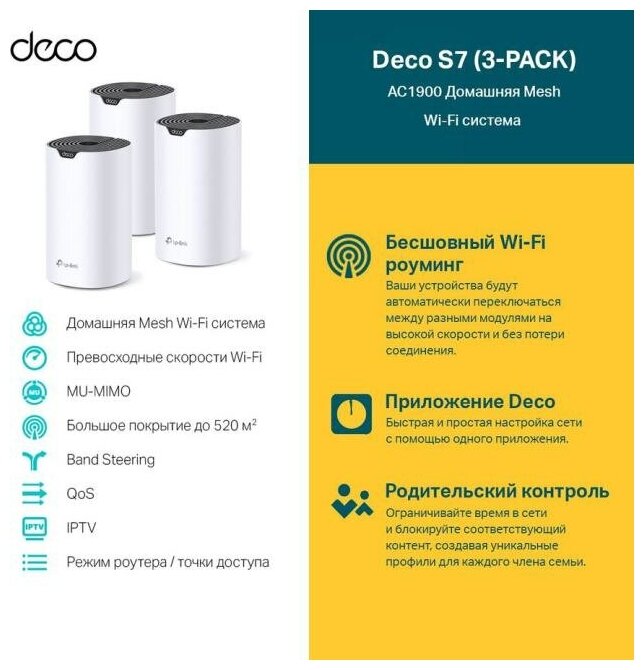 Купить Бесшовный Mesh роутер TP-LINK Deco S7(3-pack), AC1900