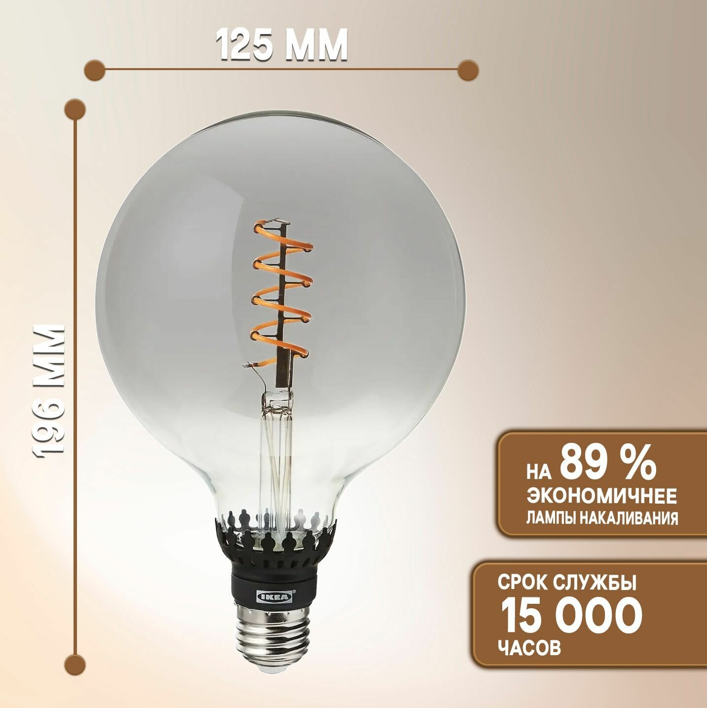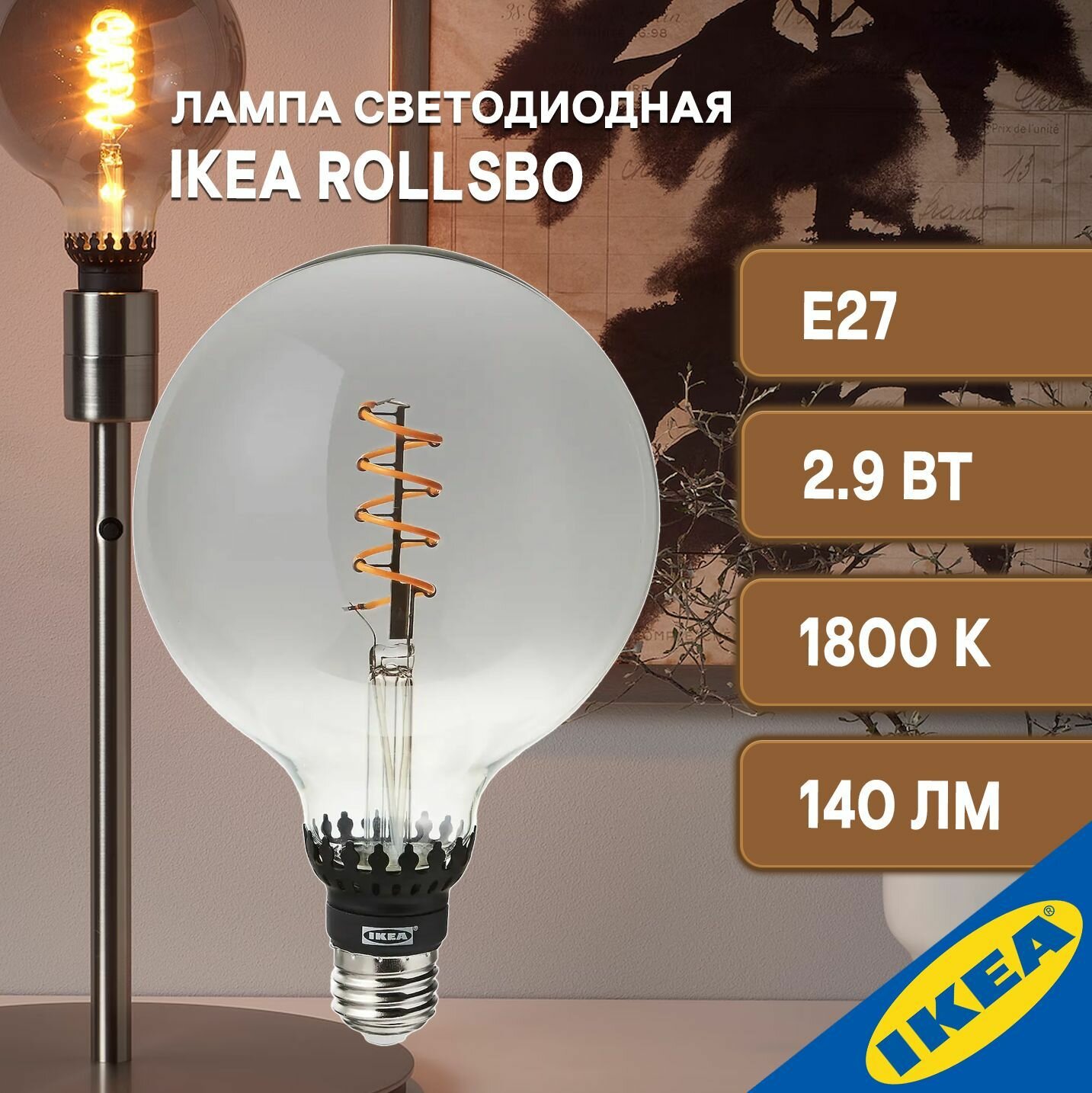 СохранитьROLLSBO ролльсбу светодиодная лампочка E27 140 лм 125 мм регулируемая яркость/шаровидный серое прозрачное стекло интересное: