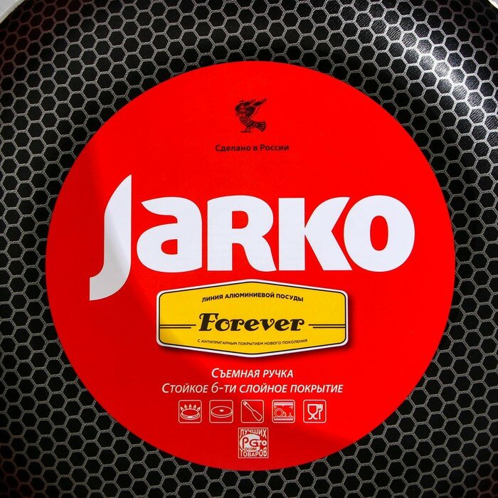 JARKO Cковорода Forever, d=26 см, съёмная ручка, стеклянная крышка, антипригарное покрытие, цвет черный