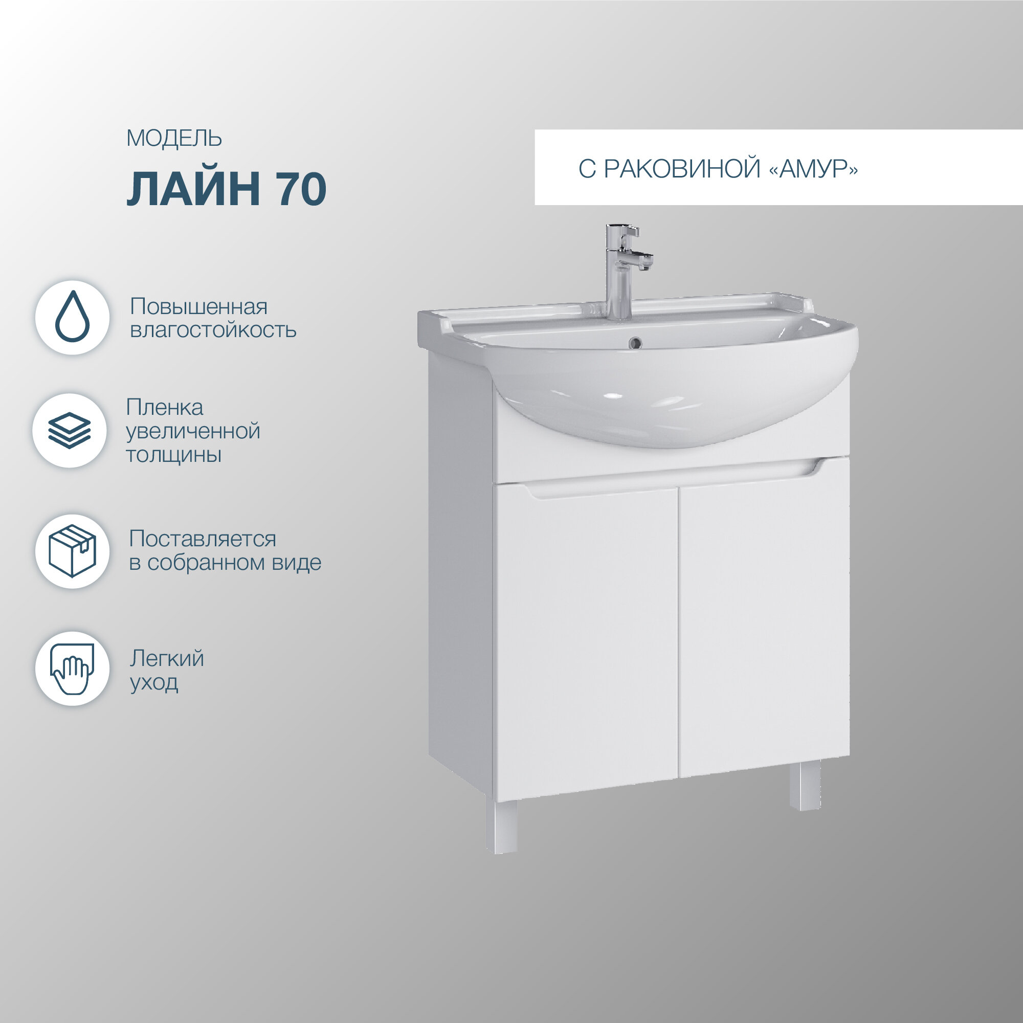 Тумба напольная SanStar Лайн 70 с раковиной Амур 70 (комплект) для ванной комнаты, белая интересное: