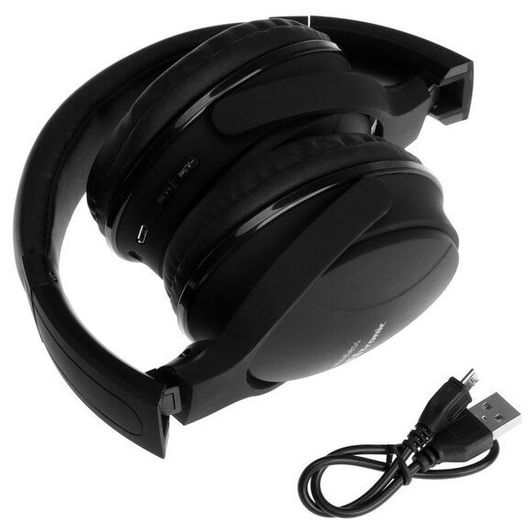Наушники ELTRONIC 4466, беспроводные, полноразмерные, BT, microSD, FM, микрофон, AUX, черные 9402567