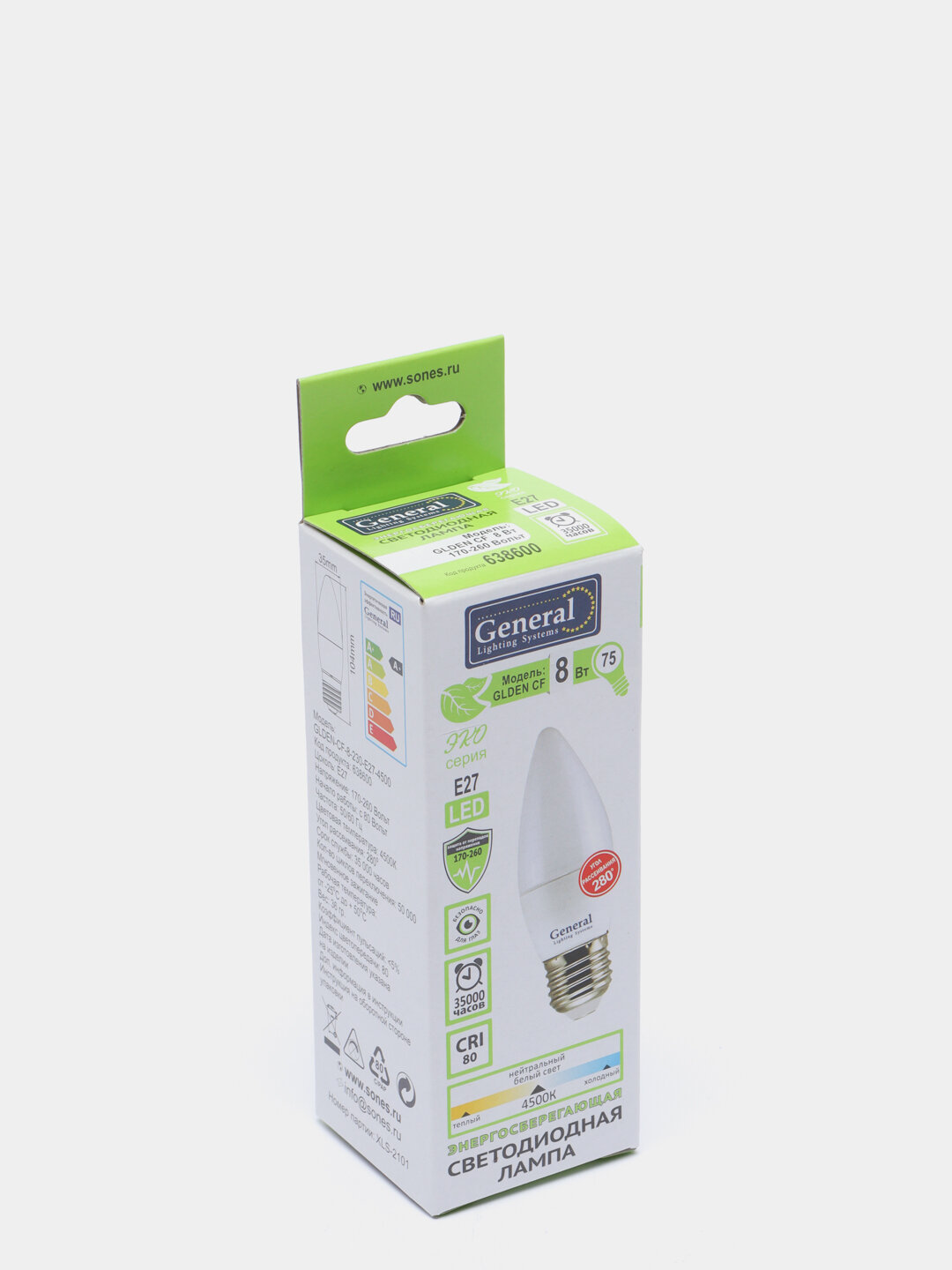 Купить General свеча E27 8W 4500K 4K 38x108 пластик/алюмин. 638600
