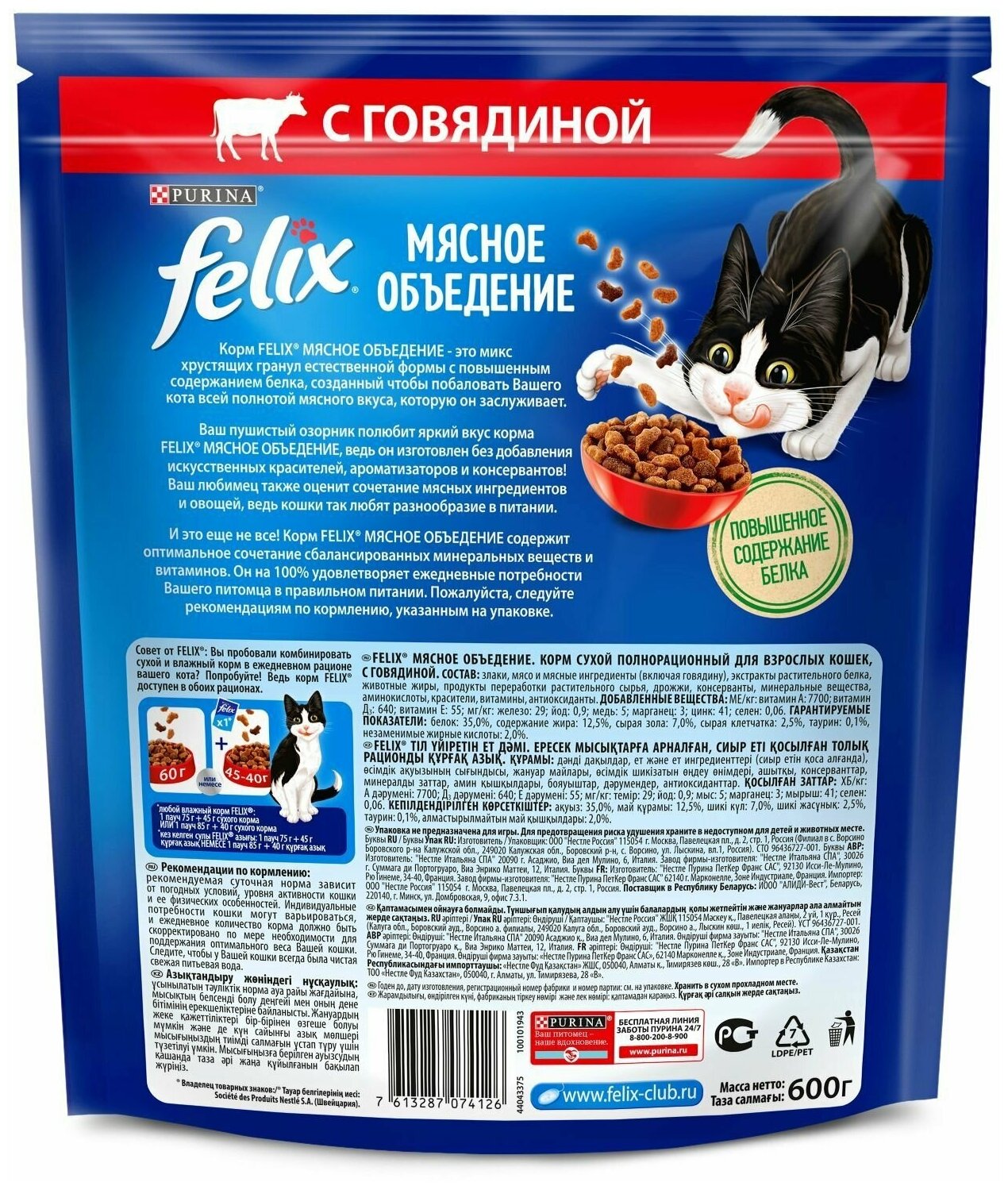 Felix Мясное объедение 600 г сухой корм для взрослых кошек, с говядиной