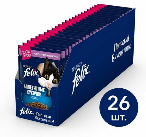 FELIX аппетитные кусочки для взрослых кошек с ягненком в желе (75 гр х 26 шт)