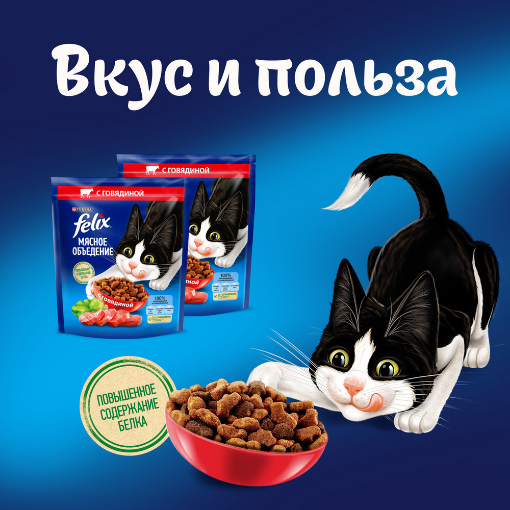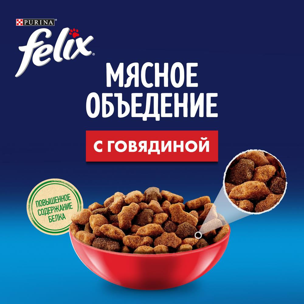 Купить Корм для кошек сухой Felix / Феликс Мясное Объедение для взрослых животных гранулы с говядиной 600г / кошачья еда для ежедневного кормления