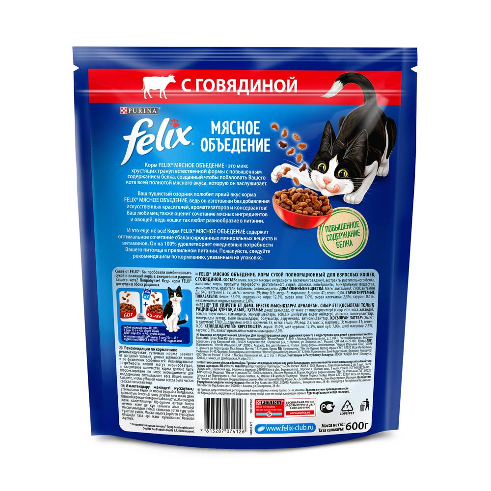 Felix Мясное объедение 600 г сухой корм для взрослых кошек, с говядиной