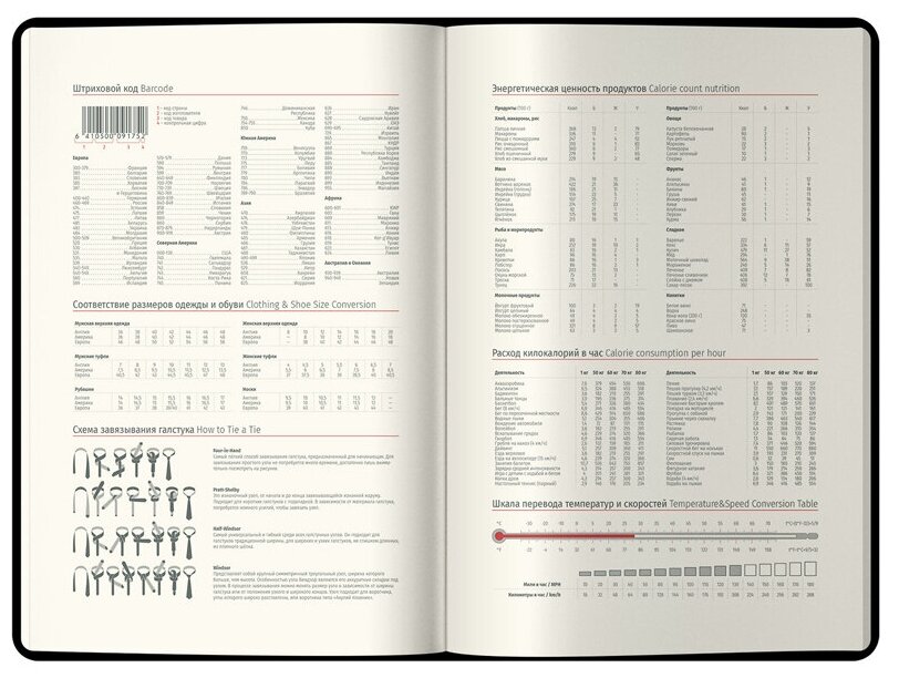 | Особенности | закругленные углы / ляссе / поля / прошивка по периметру обложки / справочная информация / цветной обрез |