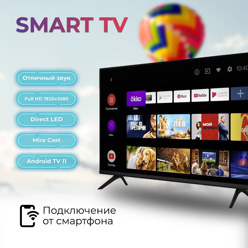 40'' Smart TV Q90 43s Телевизор BT-4300s на Android 11 Black Новый!