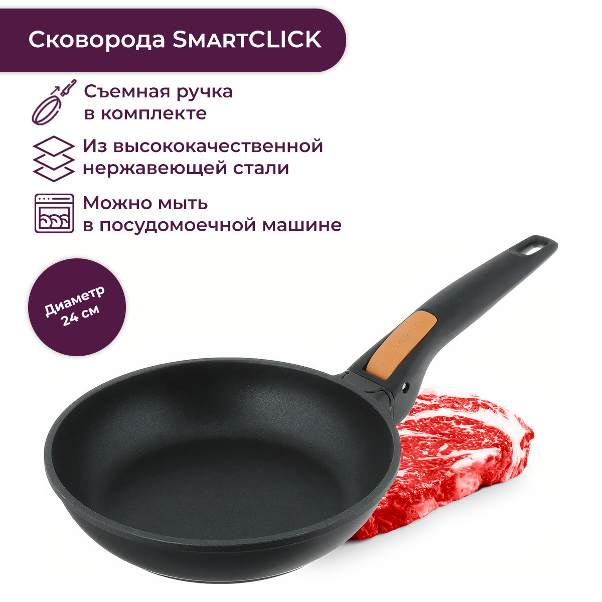 Сковорода со съемной ручкой Tescoma SmartCLICK 605024, 24 см интересное: