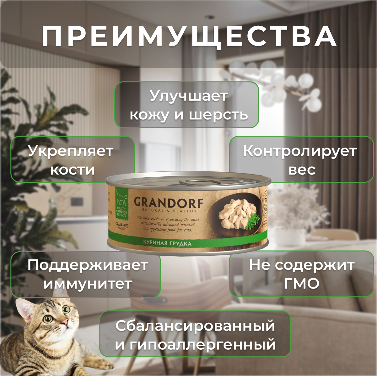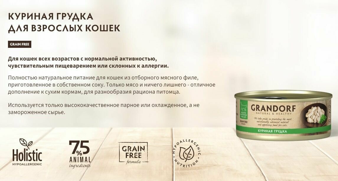 Сохранитькорм влажный для кошек Grandorf 70гр(6шт), Куриная грудка для всех возрастов интересное: