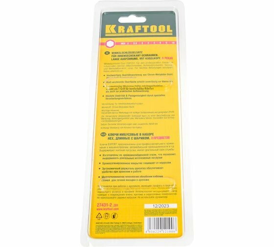 KRAFTOOL Expert Набор ключей имбусовых длинных с шариком, HEX 2-10мм, 8 пред 27431-2_z01
