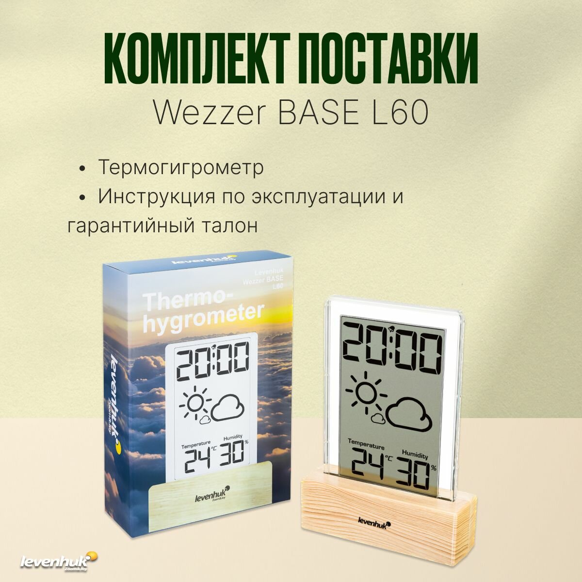 Термогигрометр Levenhuk Wezzer BASE L60 / Термометр гигрометр комнатный. Метеостанция. Измеритель влажности и температуры. Погодная станция. Температура+ влажность