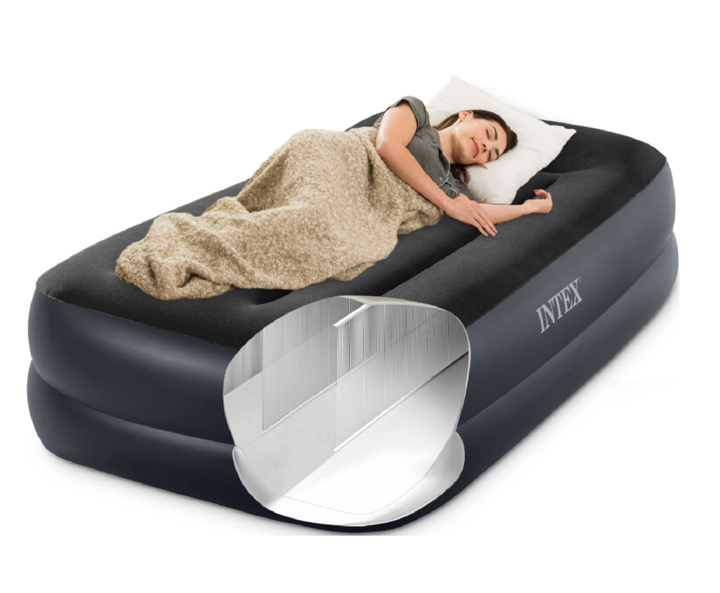 Надувная кровать Intex Pillow Rest Raised Bed (Twin), 99х191х42 см, с подголовником и встроенным насосом 220V, 64122