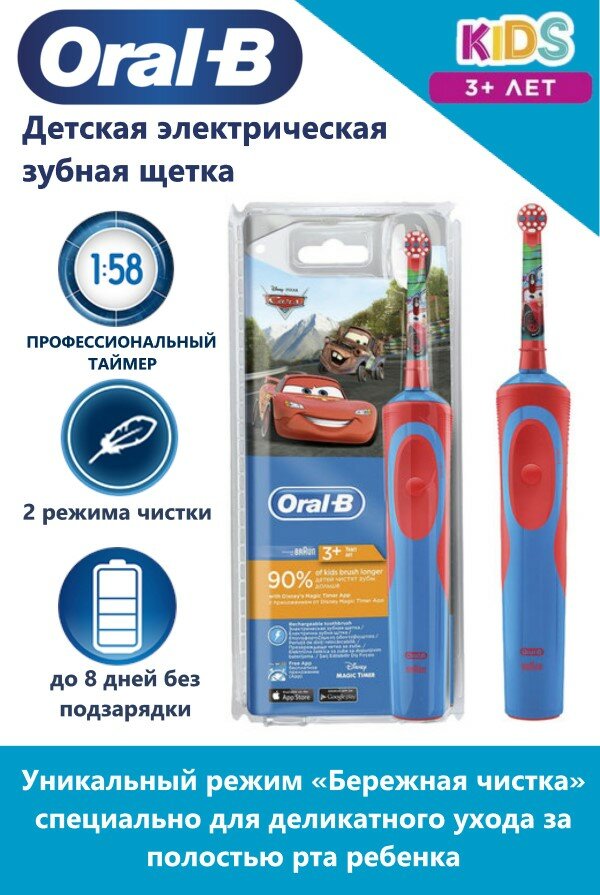 Детская электрическая зубная щетка Oral-B Kids «Тачки» Синяя 3+ лет интересное: