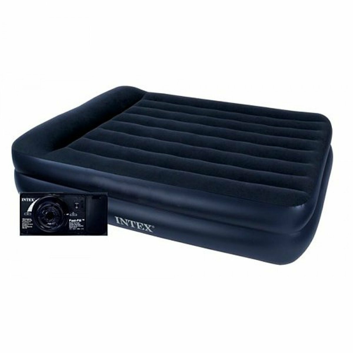 Надувная кровать Intex Pillow Rest Raised Bed (Queen), 152х203х42 см, с подголовником и встроенным насосом 220V, 64124