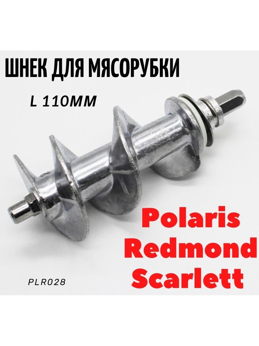 41569874 Шнек-вал к мясорубке подходит для Polaris, Redmond, Scarlett, посадка для ножа 6 граней Длина шнека 110 мм