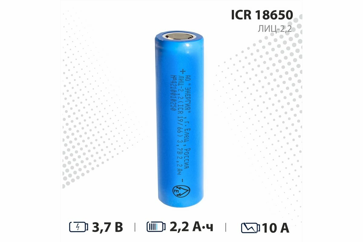 Аккумулятор Li-ion 2200 мА·ч 3,7В АО "Энергия" ICR18650 интересное: