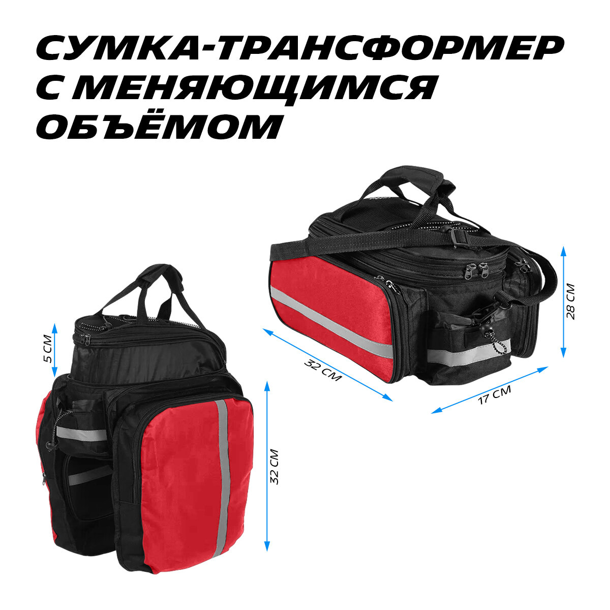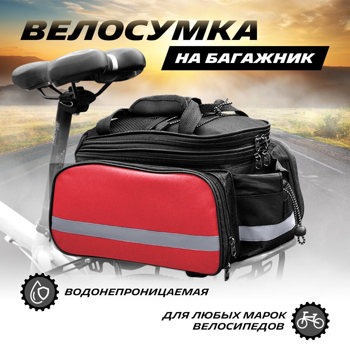 Многофункциональная водонепроницаемая сумка на багажник велосипеда, переносная с ручками (красн), MoscowCycling MC-BL-02 интересное: