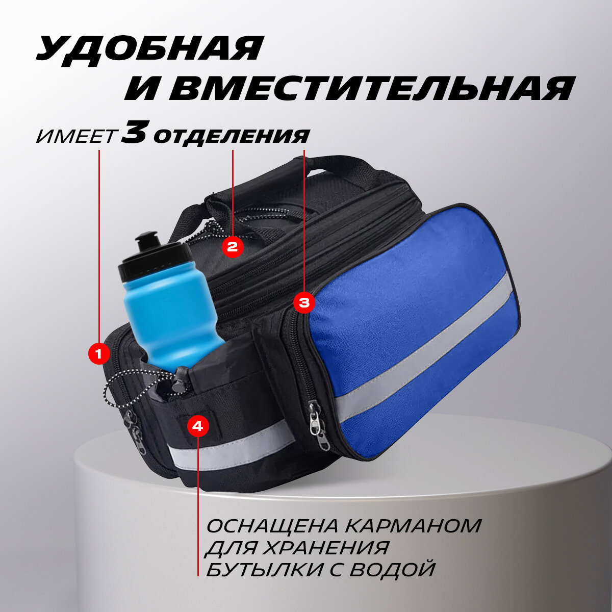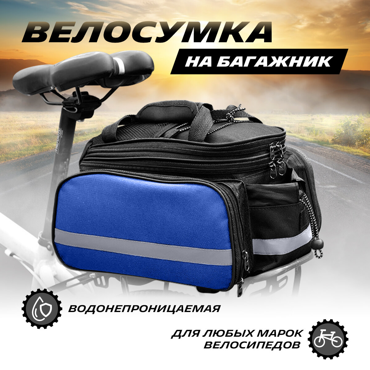 Многофункциональная водонепроницаемая сумка на багажник велосипеда, переносная с ручками (синяя), MoscowCycling MC-BL-03 интересное: