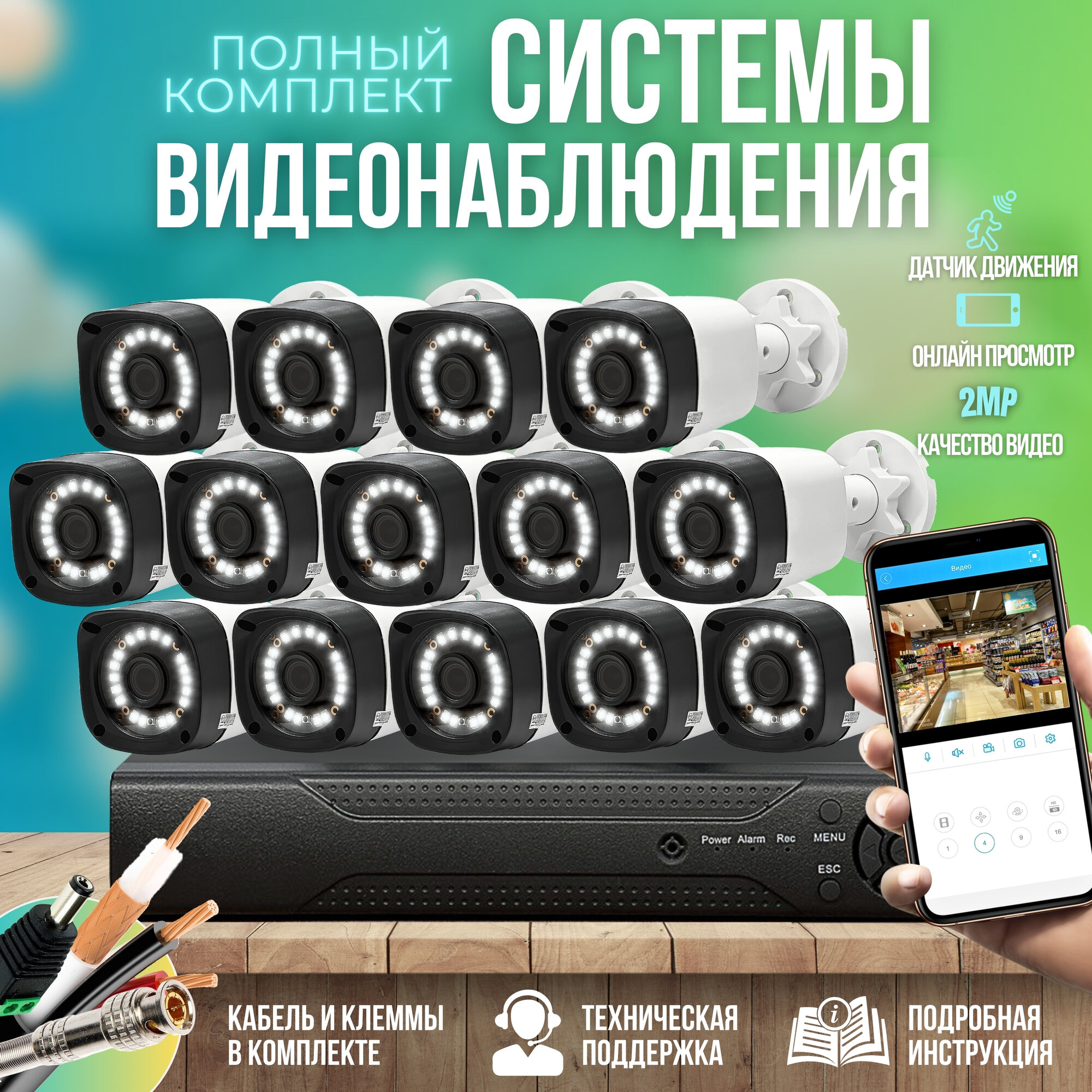 Камера видеонаблюдения комплект 16шт 2MP ST-KIT-A162HD-L