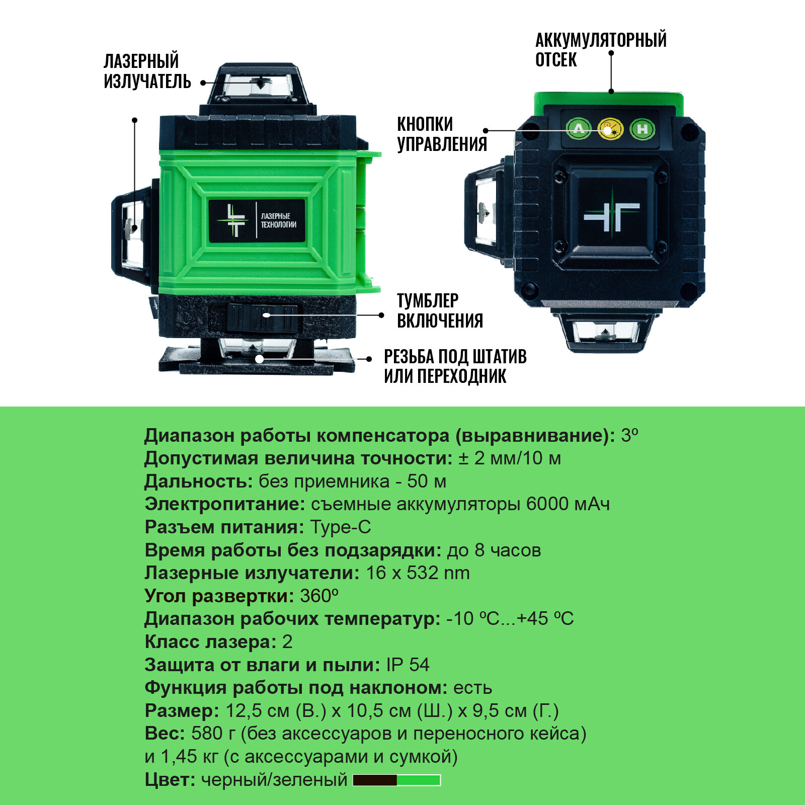 Профессиональный Лазерный уровень (нивелир) LT L16-360A 4D 16 линий. интересное:
