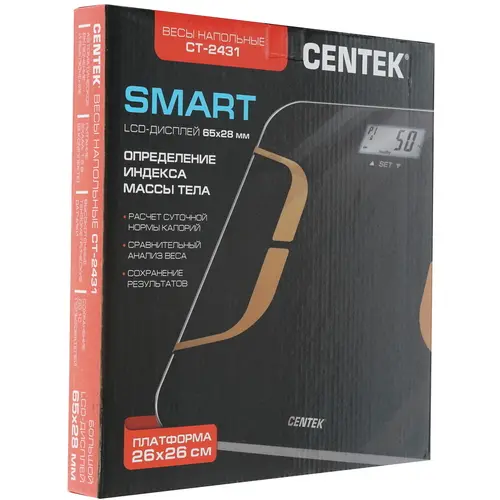 Весы напольные Centek CT-2431 Индекс массы тела, LCD 65x28, размер 26х26см