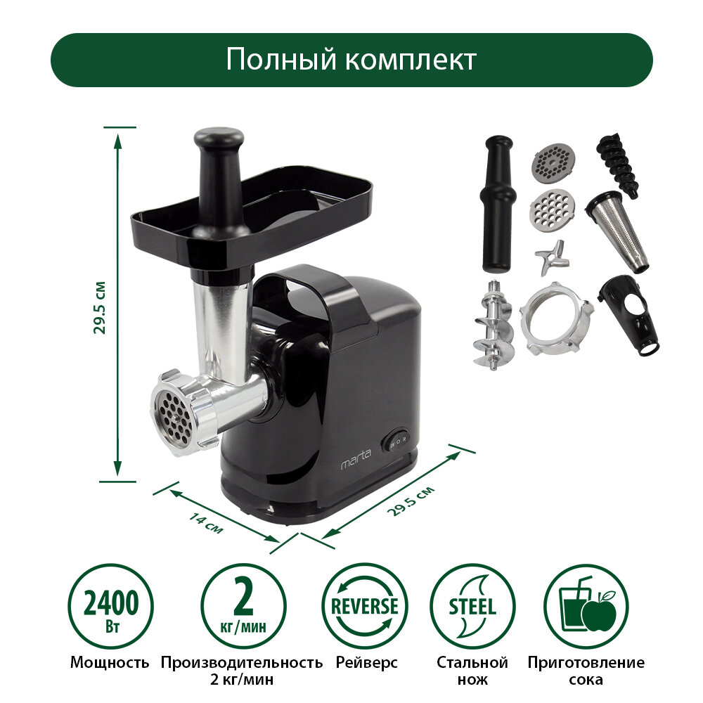 Мясорубка MARTA MT-MG2016A черный жемчуг интересное: