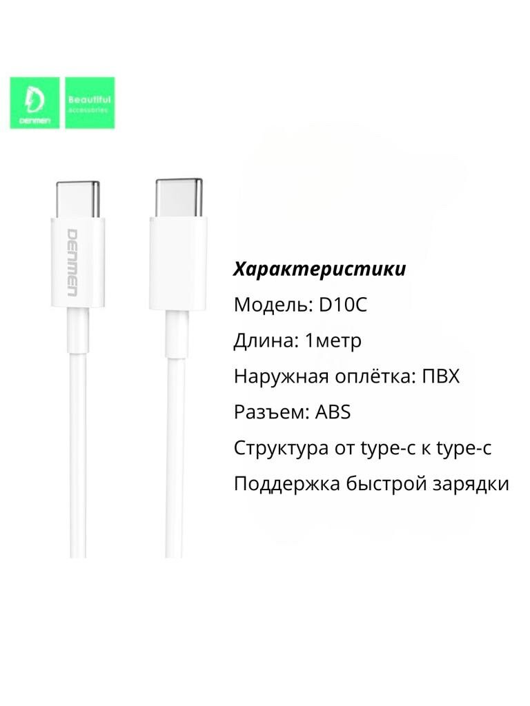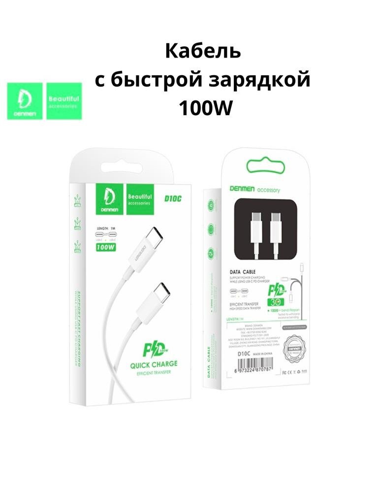Кабель для быстрой зарядки Denmen D10C Type-C to Type-C, PD100W, 3A, 1 м, Белый интересное: