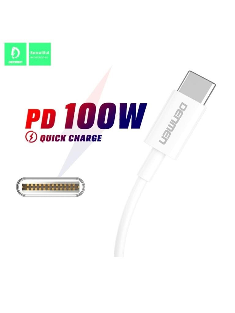 Кабель Denmen USB Type-C 100W (1m) белый