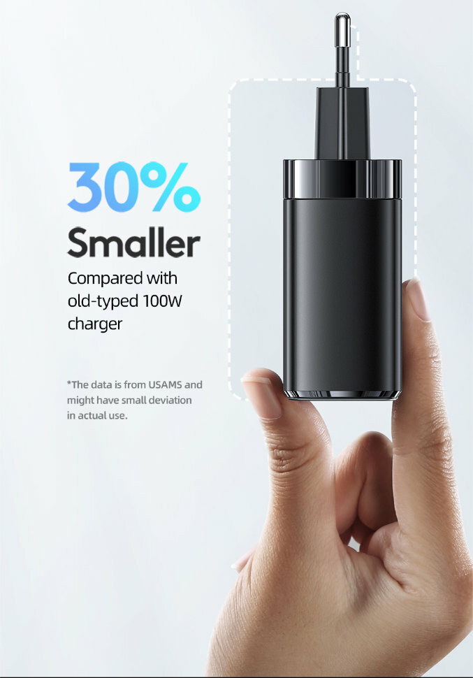 Сетевой адаптер USAMS UCTZ01 T44 100W GaN Чёрный (+ Type-C кабель 1.2м) интересное: