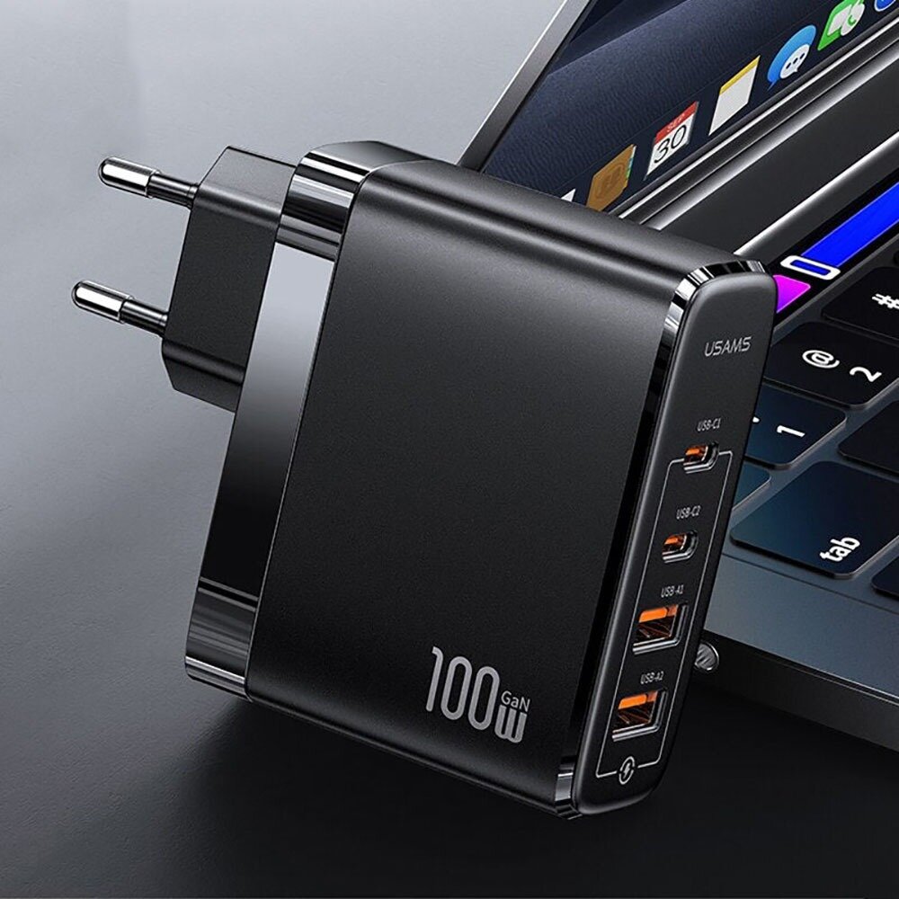 Купить Сетевой адаптер USAMS UCTZ01 T44 100W GaN Чёрный (+ Type-C кабель 1.2м)