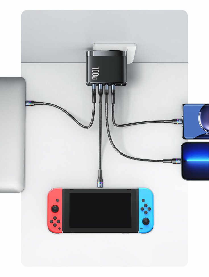 | Плюсы: | быстрая зарядка, можно заряжать несколько устройств, 100w, подходящий провод в комплекте |