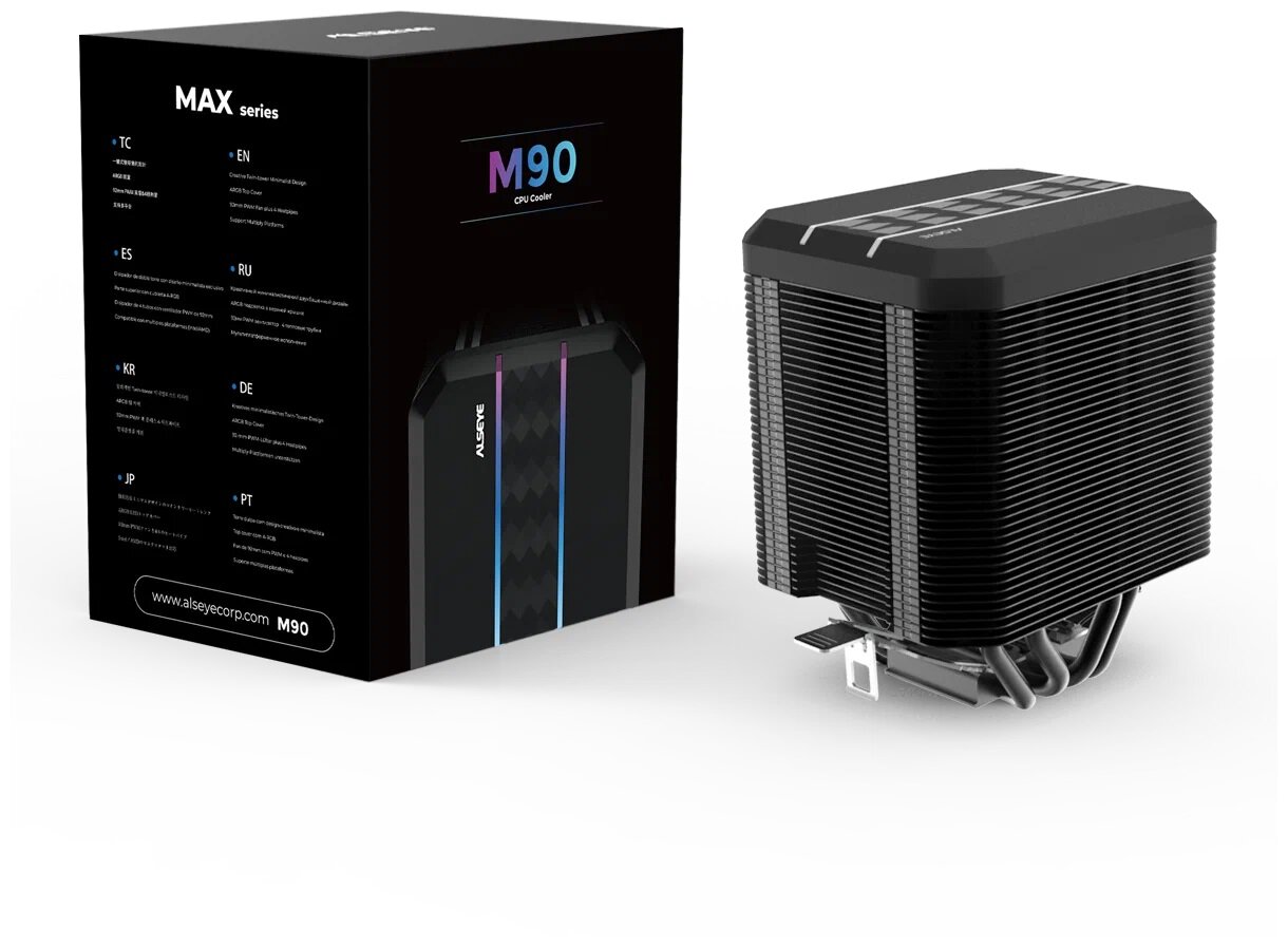 Вентилятор Alseye M90 AS.01.01.0041 Height 135mm, Univerasl, TDP 180W, 4x6mm heat pipe, FAN 90mm, 800~2400rpm, 28dBA, ARGB, LGA1200/115x, AMD AM4, RTL (874715) интересное: