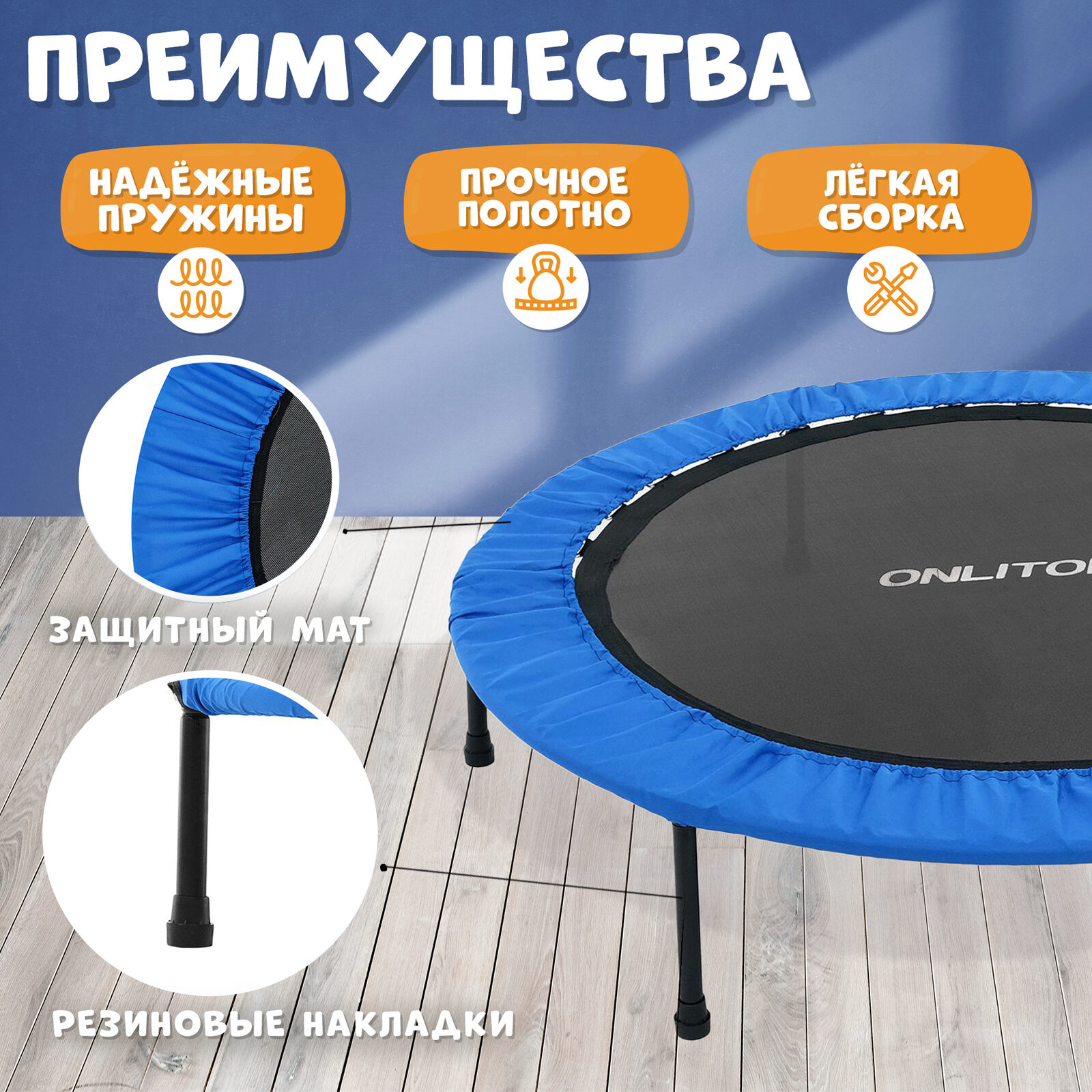 Батут ONLITOP, диаметр 101 см, максимально допустимый вес 60 кг, цвет синий интересное: