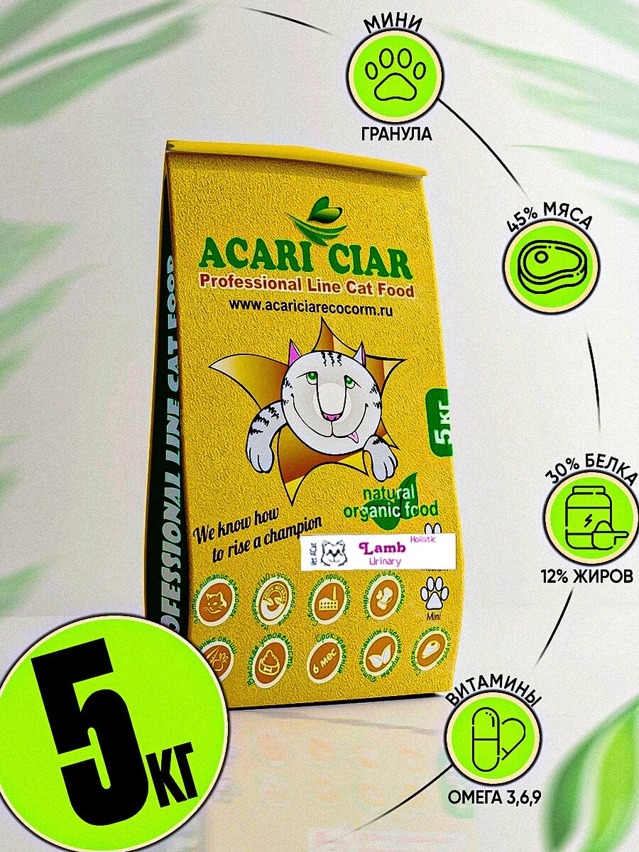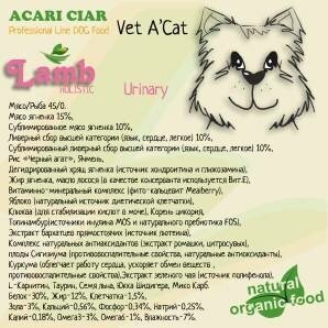 Корм сухой для кошек Acari Ciar Vet A'Cat URINARY LAMB Holistic 5 кг для профилактики МКБ интересное: