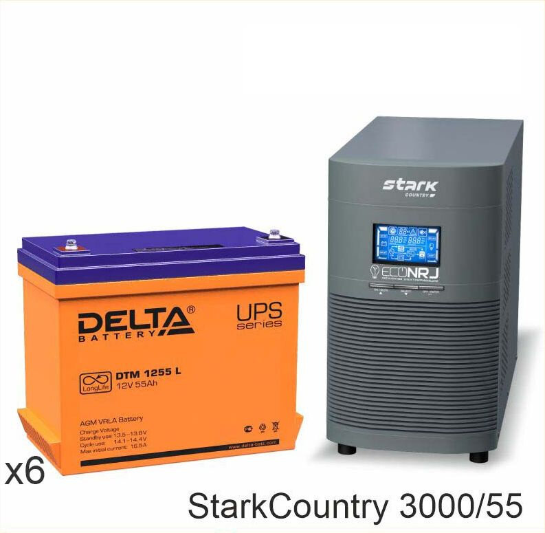 Купить Инвертор (ИБП) Stark Country 3000 Online, 12А + АКБ Delta DTM 1255 L