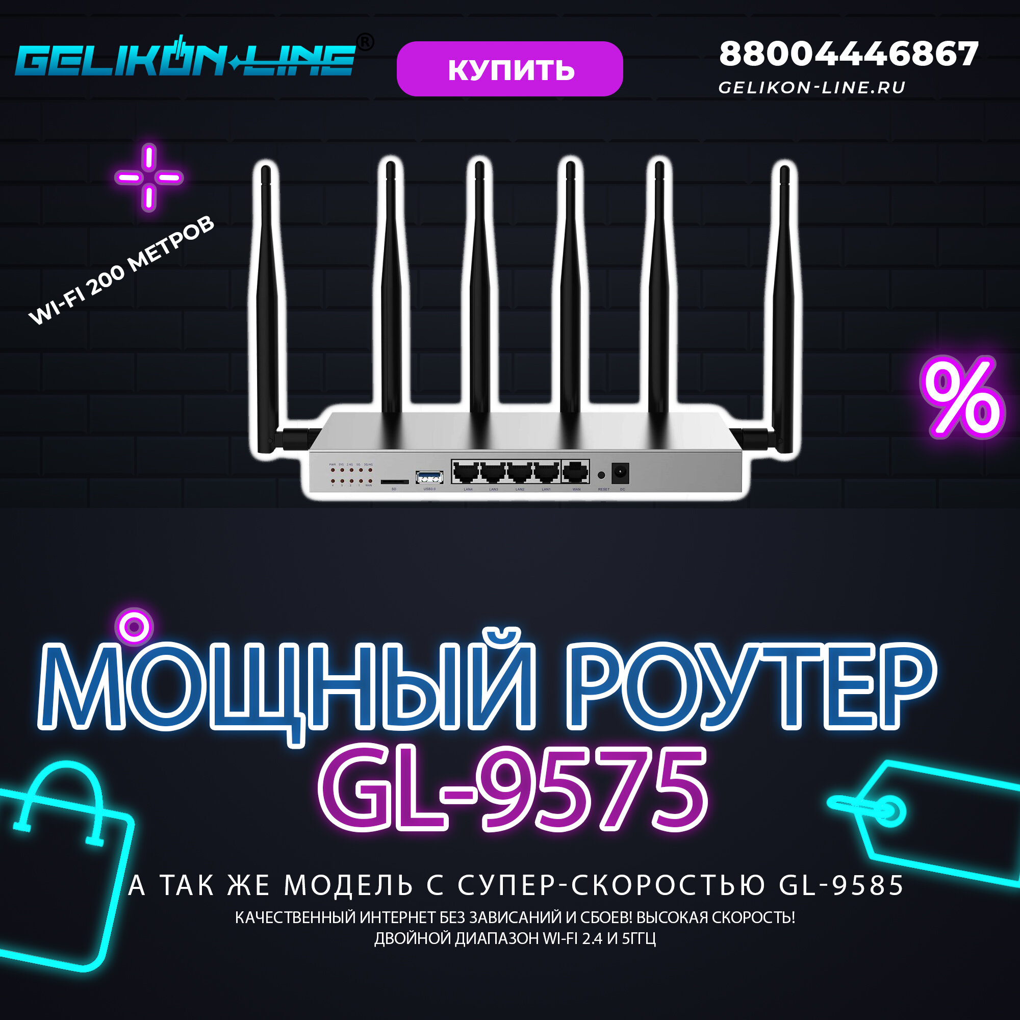 Купить 4G Wi-Fi роутер GL-9575 5G ULTRA, готовый комплект, интернет на дачу, wi-fi роутер с сим, мобильный роутер wi-fi