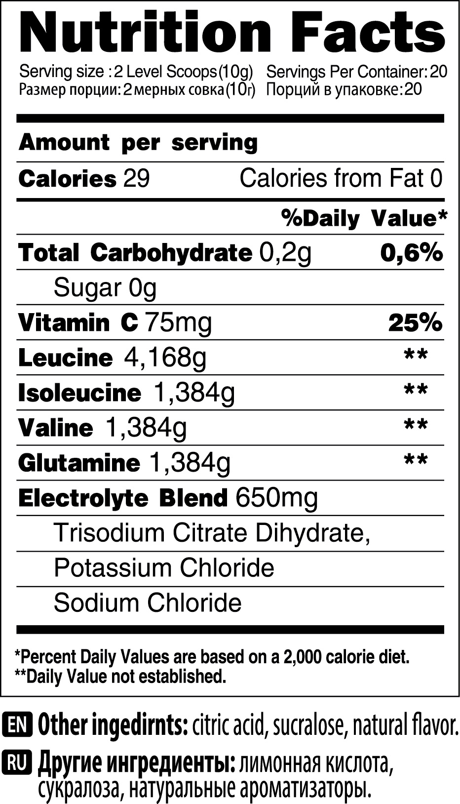 | Тип | BCAA / аминокислотный комплекс: -- |