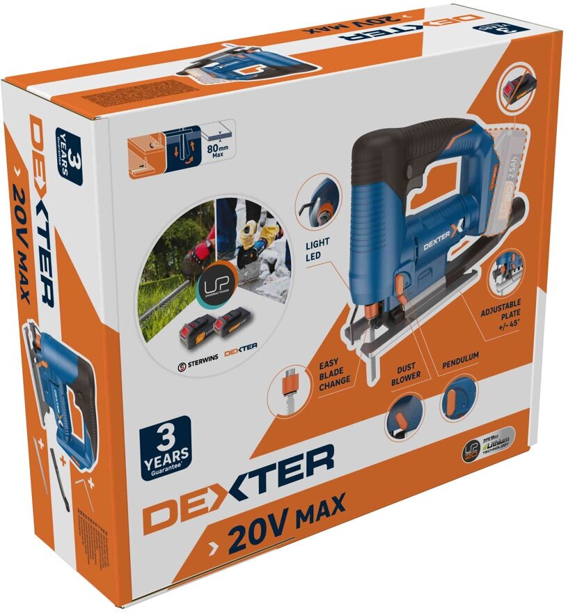 Купить Лобзик аккумуляторный Dexter 20VJS2-28.1, 20 В Li-ion, без АКБ и ЗУ