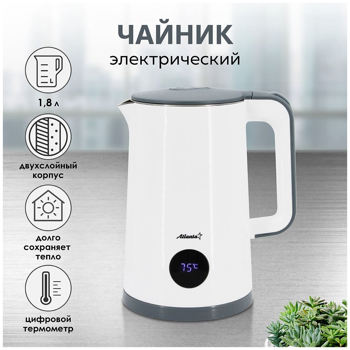 Чайник ATLANTA ATH-2447 (WHITE) Чайник двухстенный электрический