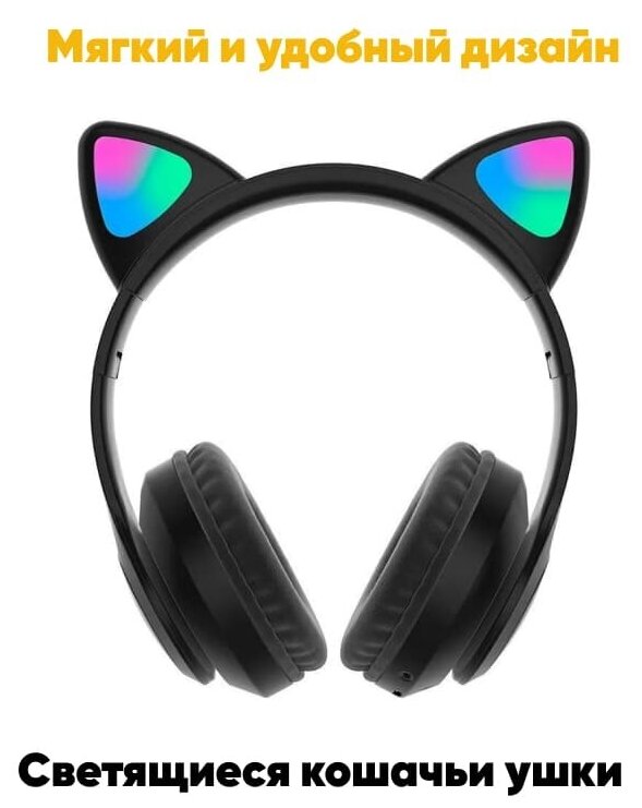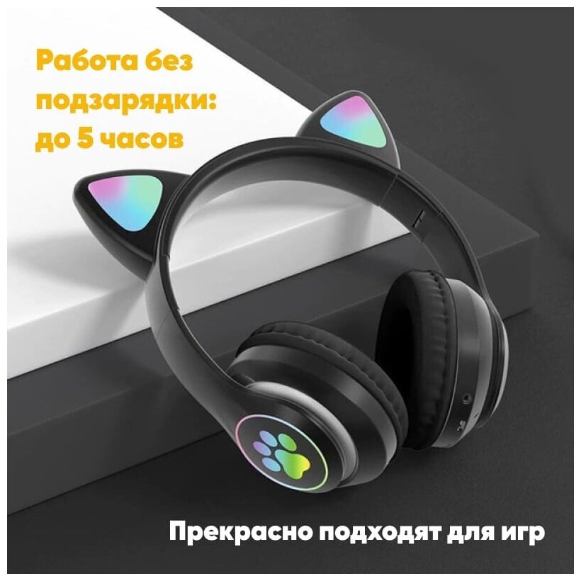 Беспроводные Bluetooth наушники с ушками RGB подсветка чтение карт памяти TF KT-46 черные интересное: